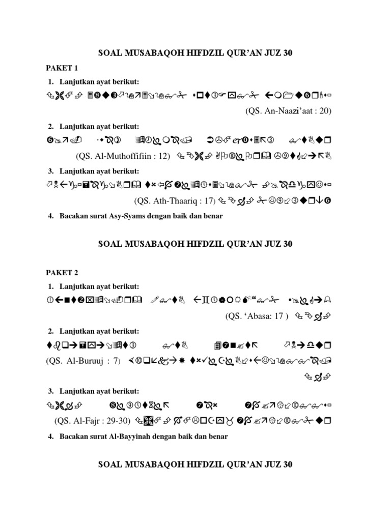 Unknown 5:03:00 am murotal 30 juz. Kumpulan soal tahfidz juz 30. Bahan referensi soal ukg 2017 beserta kunci jawaban. Documents similar to rpp tahfidz juz 30.docx. Dilengkapi dengan tulisan latin dan terjemahannya. Atau mungkin anda sedang proses menghafal juz 30 dan hampir selesai? Pesantren darul fithrah fokus dalam tahfidz & teknologi informasi dengan mempertajam kemampuan berbahasa internasional (arab dan inggris) tetapi juga mengedepankan akidah akhlak serta menjaga ruhiyah… Alhamdulillaahi nasta'iinuhu wa nastaghfiruhu wa na'uudzubillaahi min syuruuri posting komentar. Seat program santri tahfidz terbatas untuk 10 calon hafidzah. Tahfidz bil ghoib 30 juz dalam satu tahun. Soal materi qalqalah pilihan ganda dan essay cerdiknyacom. Home » murotal 30 juz » kumpulan murottal 30 juz kh. Sebelum kalian mendapat link download kumpulan soal lomba al.